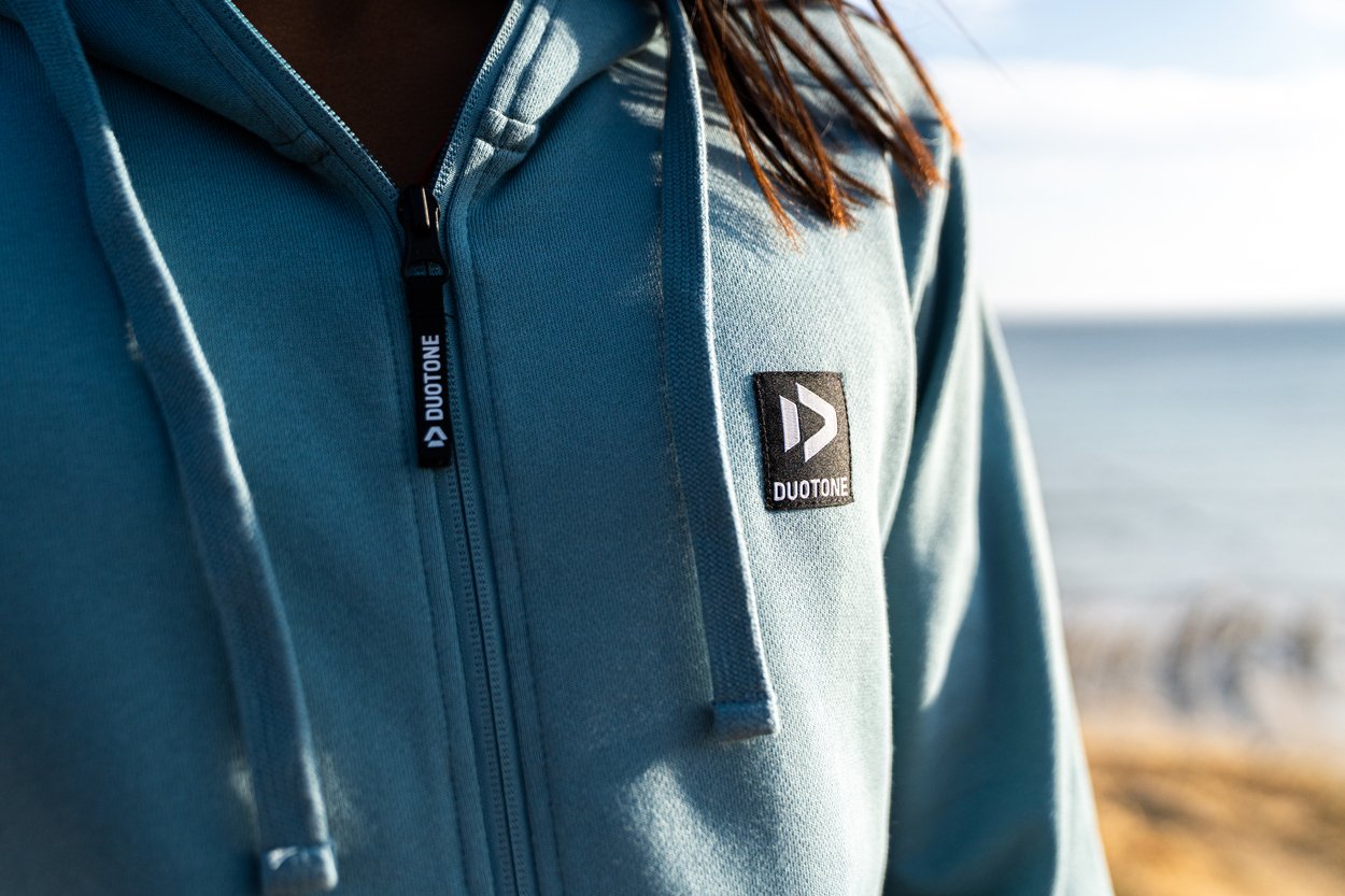 The new men’s Gust Zip Hoody features double front pockets, lined hood, small Duotone patch branding, extra thick lacing through the hood and a semi-long fit through the torso. Offered in a muted blue hue that is great for everyday wear.
