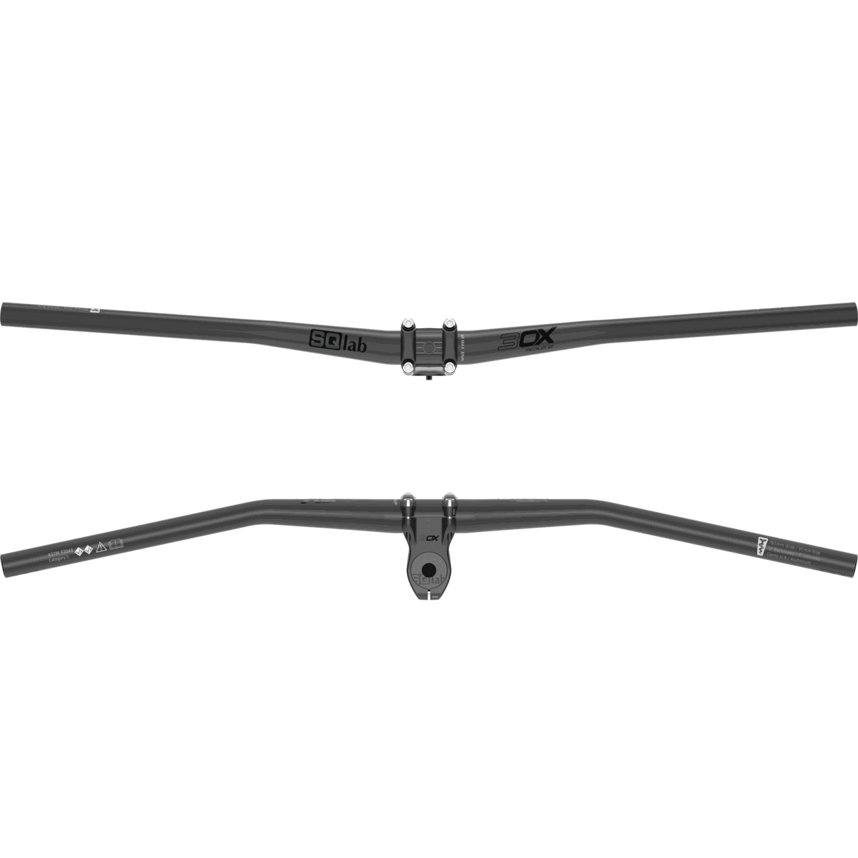 The 12° backsweep with its short reach provides a natural transition from the lower arm to the hand when in a more upright riding position thus protecting the wrist from the extreme strain occurring in downhill [riding].The 4° upsweep brings the elbows into a perfect position for a dynamic riding style.The 15mm, 30mm or 45mm rise allow individualized positions.31,8mm clamp diameter.Also available in carbon.Passed the “Zedler End of Life” test with flying colors The perfect combination of form, wall thickness and diameter with the corresponding anatomically optimized bend for various riding dynamics, currently make the new SQlab 30X handlebar series the most stable as well as the lightest bar in its field.The pictured stem is not included in the scope of delivery.