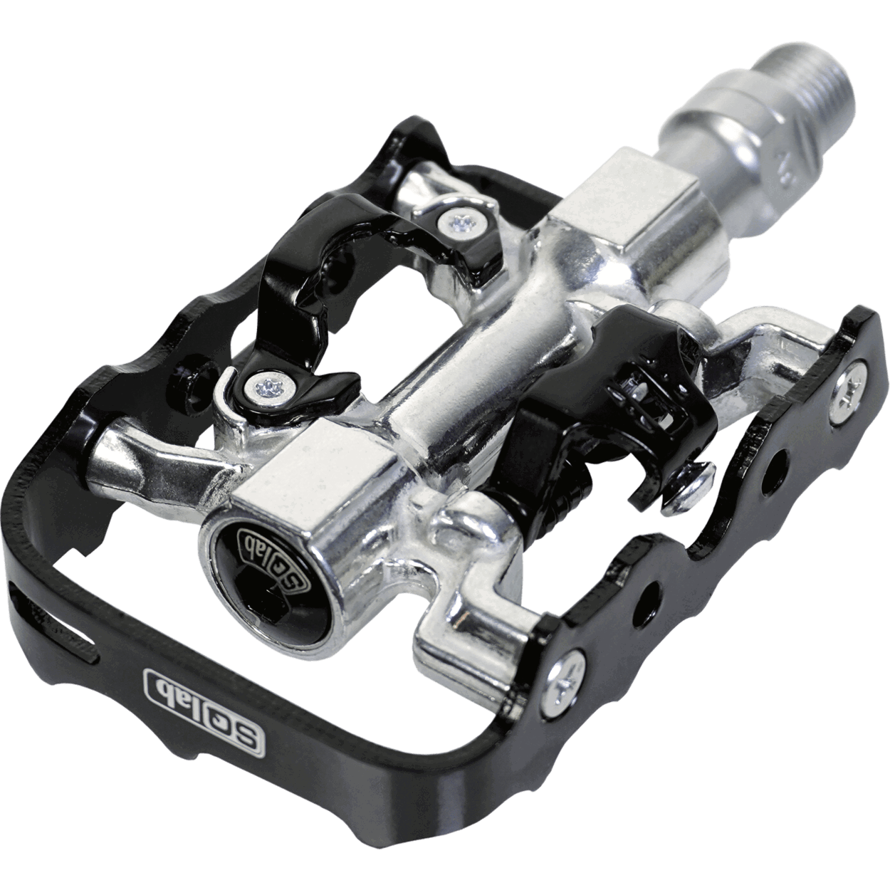 One sided clipless pedal available in four different axis lengths. Conventional clipless pedals force the feet into a virtually parallel position. The longer axle of the SQlab 502 clipless pedal allows a physiologically natural foot position. This prevents one sided loads - especially with a calf leg head or fibula head syndrome. The version with shorter axle is suitable for riders with small shoe sizes and small sitbone distances. The so-called Q-factor can hereby be reduced. Reflectors and cleats are included. The included cleats are SPD compatible.