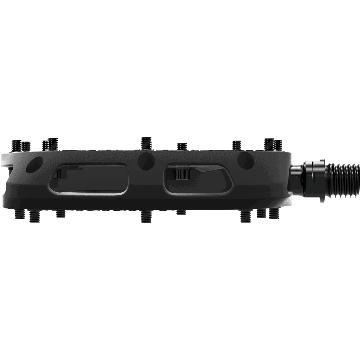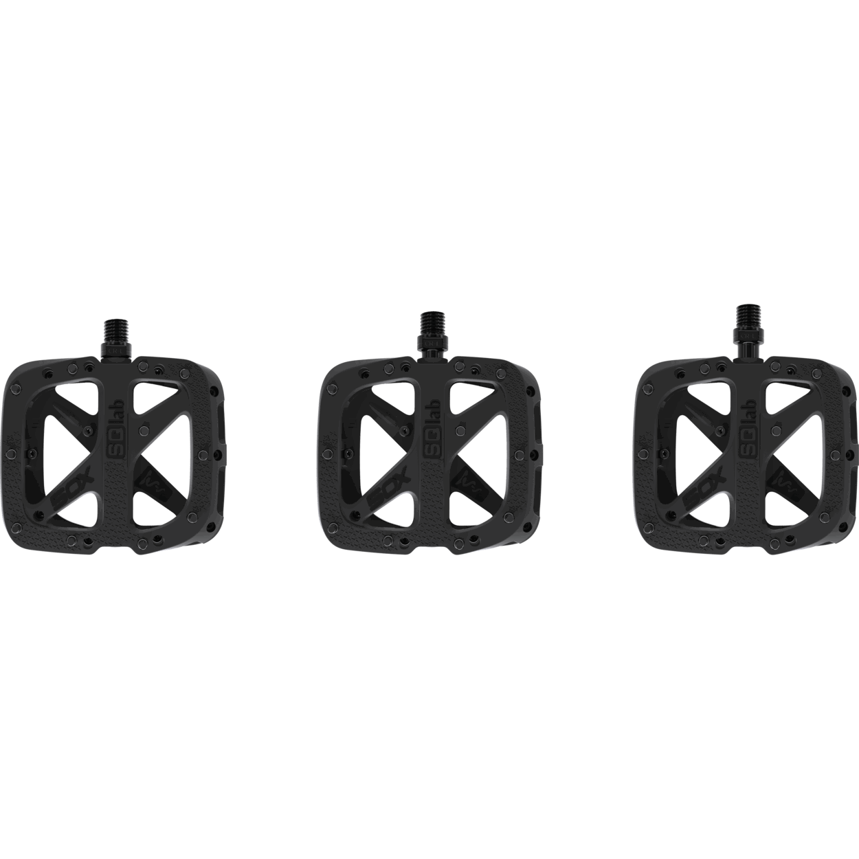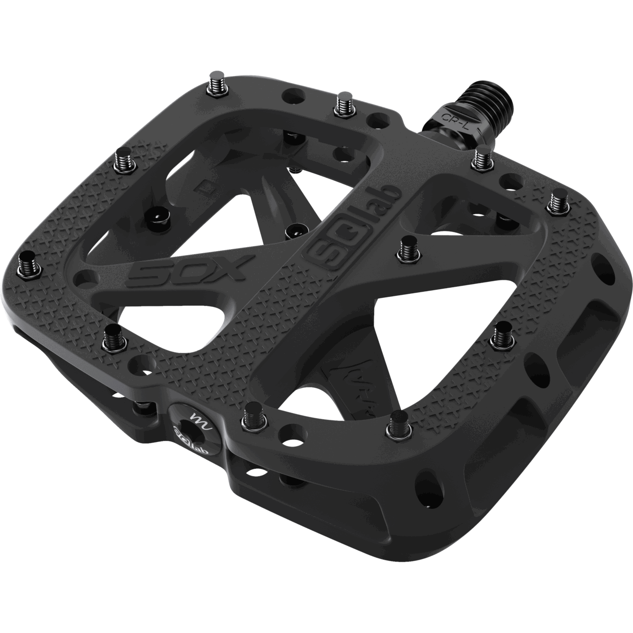 Reliable and robust In hard contacts with stones and rocks, the material can give way and can usually withstand more abuse than classic, comparable aluminum platform pedals. For this reason, SQlab relies on composite and does not offer an aluminum version. Bearings are the most important part for durability – SQlab installed Japanese precision bearings on the outer and bush/slide bearings on the crank arm side. The three different axle lengths provide a physiologically natural foot position on the pedal: Suitable for larger feet, a V-shaped foot position or larger sit bone distances, which usually require a higher Q-factor. The slightly concave platform surface allows an ergonomic position on the pedal and creates enormous grip at the same time. To provide a maximum pedaling surface, the surface is flush with the pedal axle. This avoids an annoying “step” / “bump” in the pedal surface, as it is the case with some other flat pedals Features: + Available in three different axis lengths + Adapted to the natural foot position + Large platform (115 x 105mm) + Fiber reinforced plastic + Japanese ball bearings + IGUS friction bushings Made in Germany + replaceable pins Scope of delivery: 1x pair SQlab pedal 5OX 3x spare pins Axle lengths: Small: Shoe size 36 - 40 Medium: Shoe size 41 - 45 Large: Shoe size 46 - 50